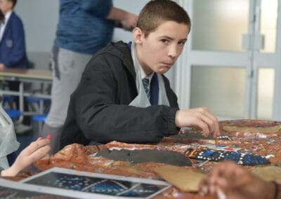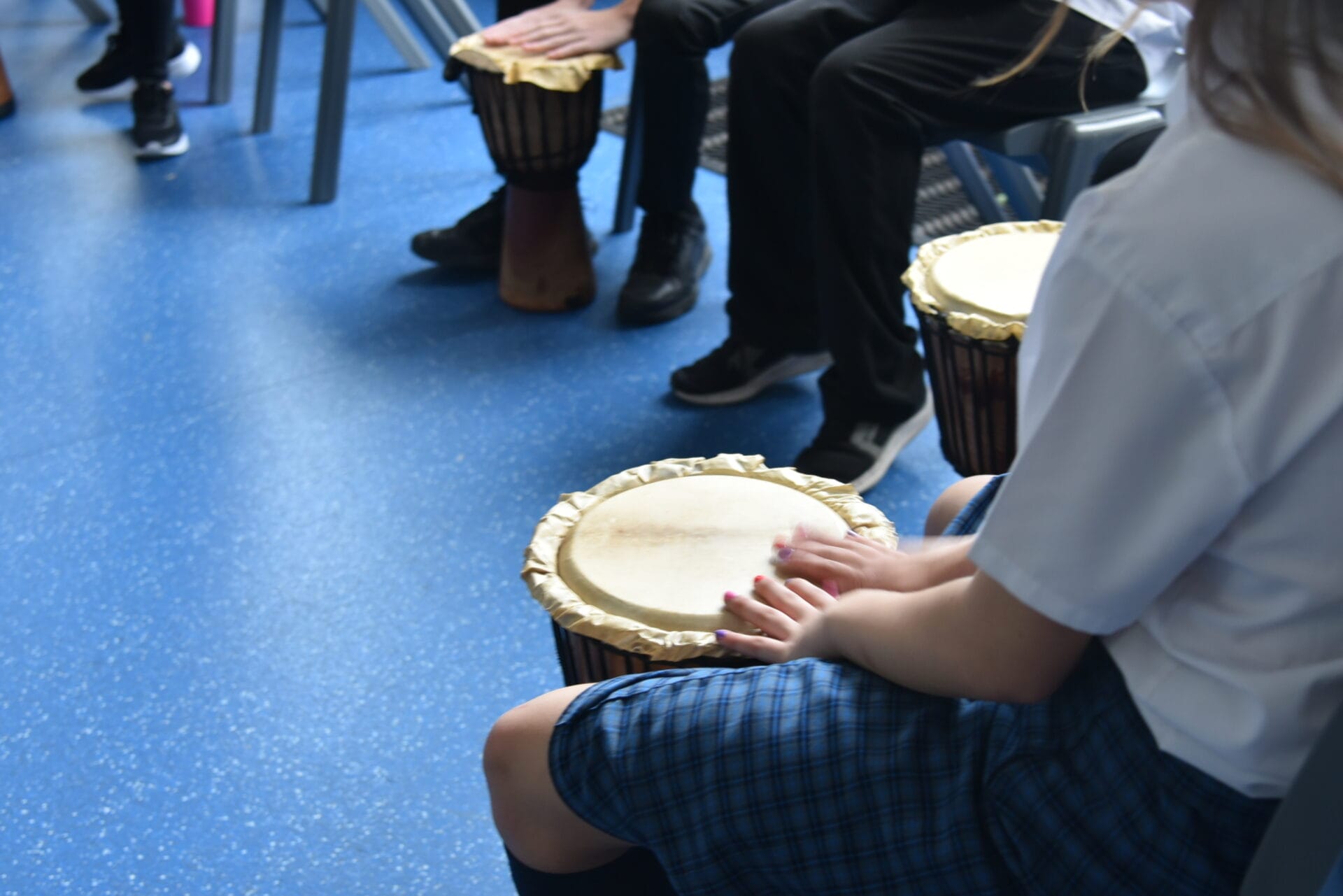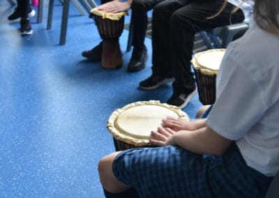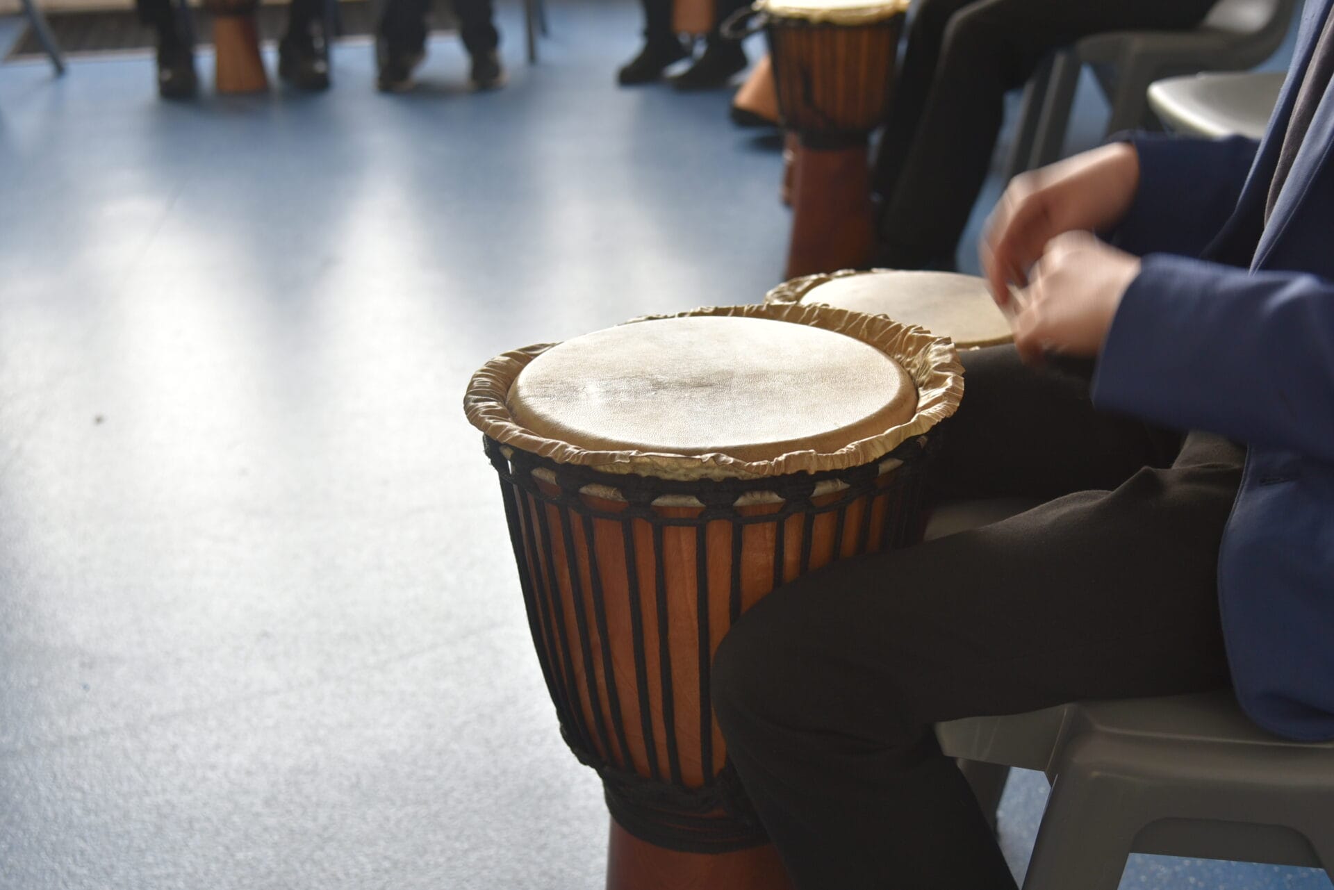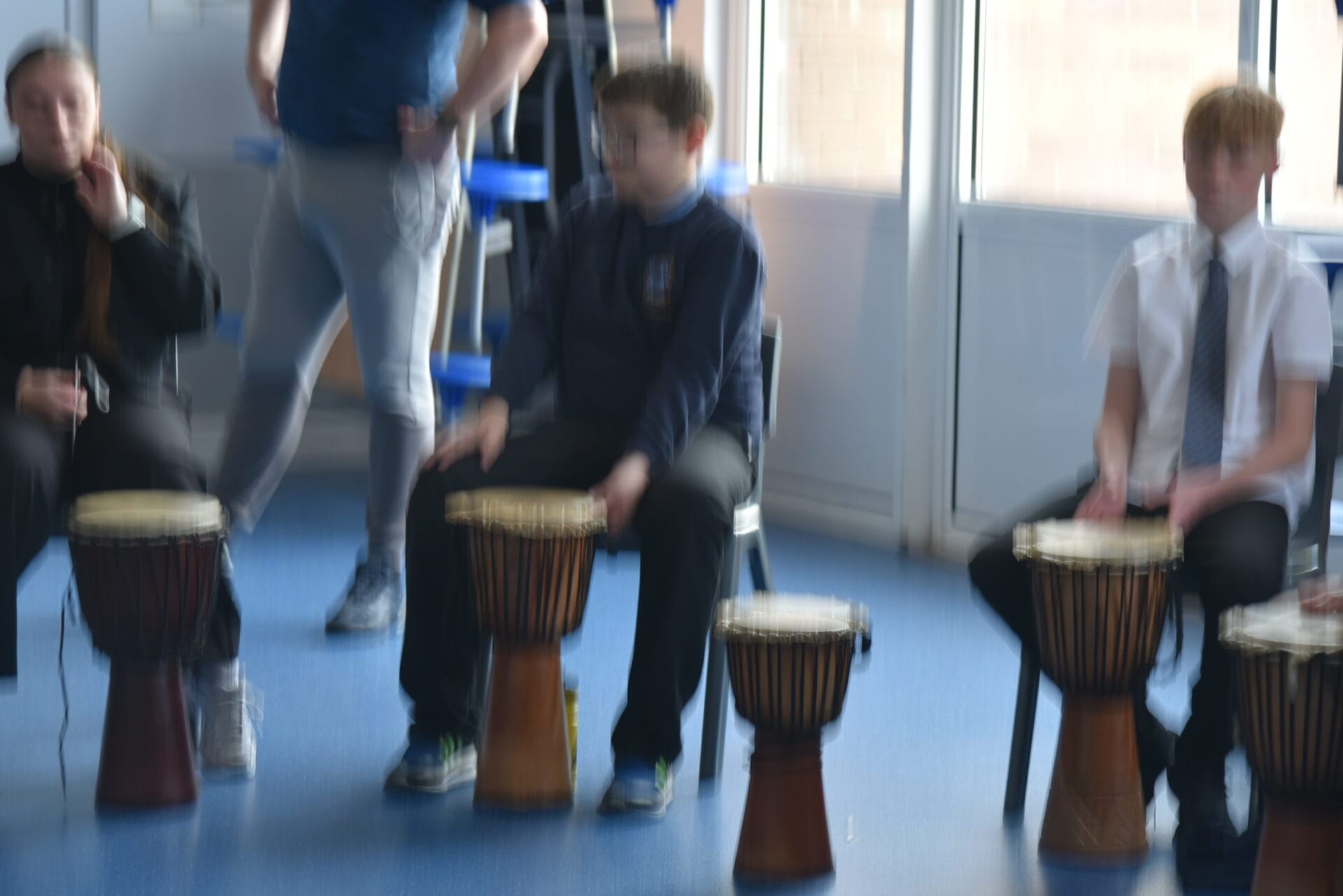 After a morning of artistic activity, the pupils were ready for a change of pace. The afternoon session was dedicated to the dynamic rhythms of African drumming. Led by a skilled drummer the pupils gathered in a circle around an selection of djembes – all different sizes.